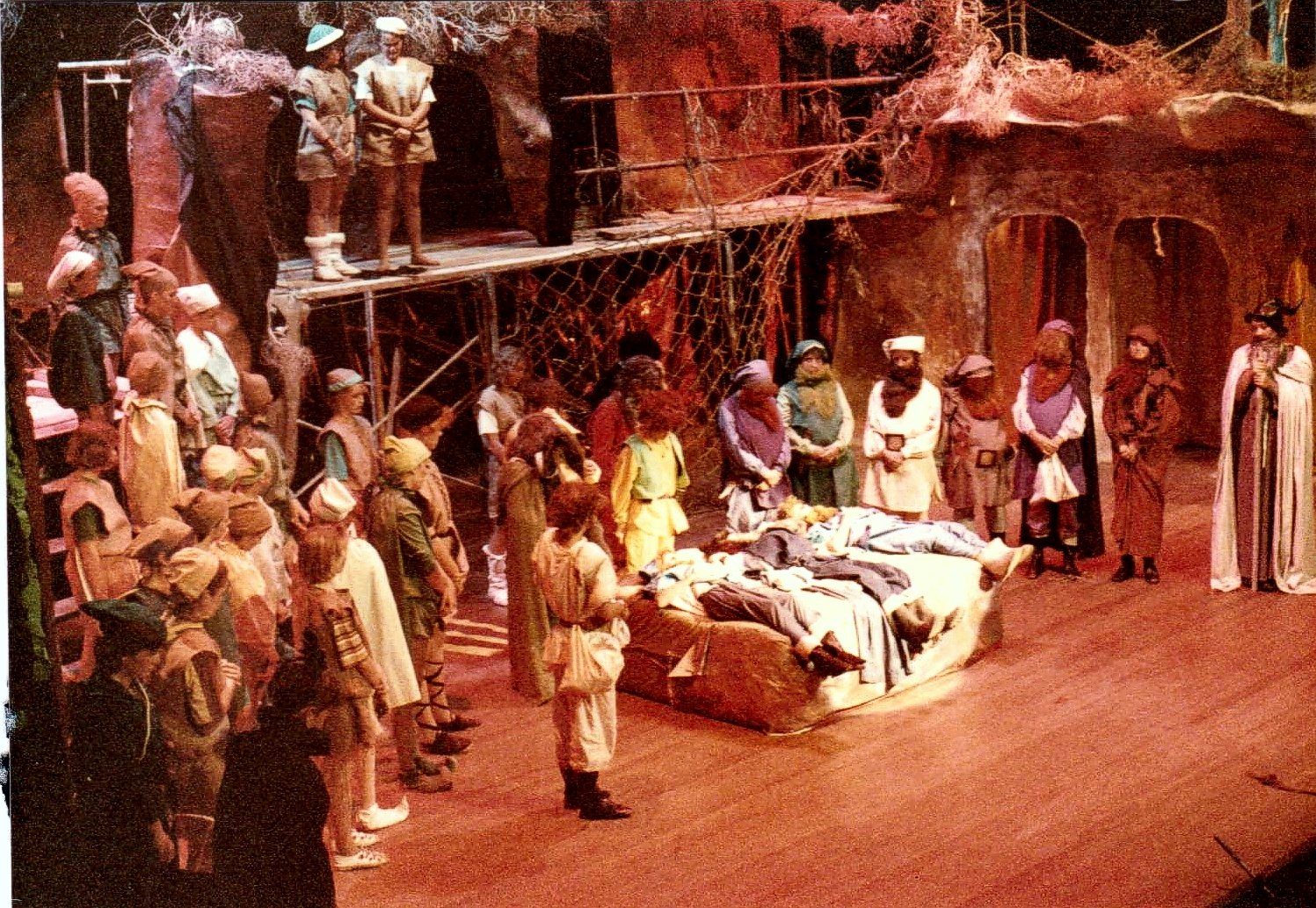 The above is from The Hobbit a long time before the film was made and we did have permission to perform. A cast of 90 girls from a girls school in Cairns North Queensland. This is a great script for a large cast and to try new and innovative approach to not only the performers but the setting and technical approach.